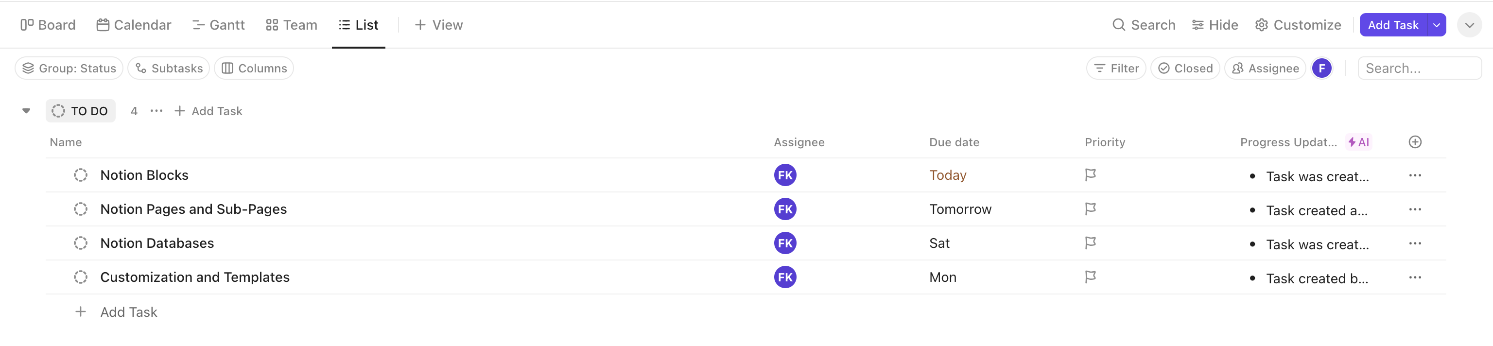 Once you sign up for this or any course, plan all lessons in the free platform ClickUp.