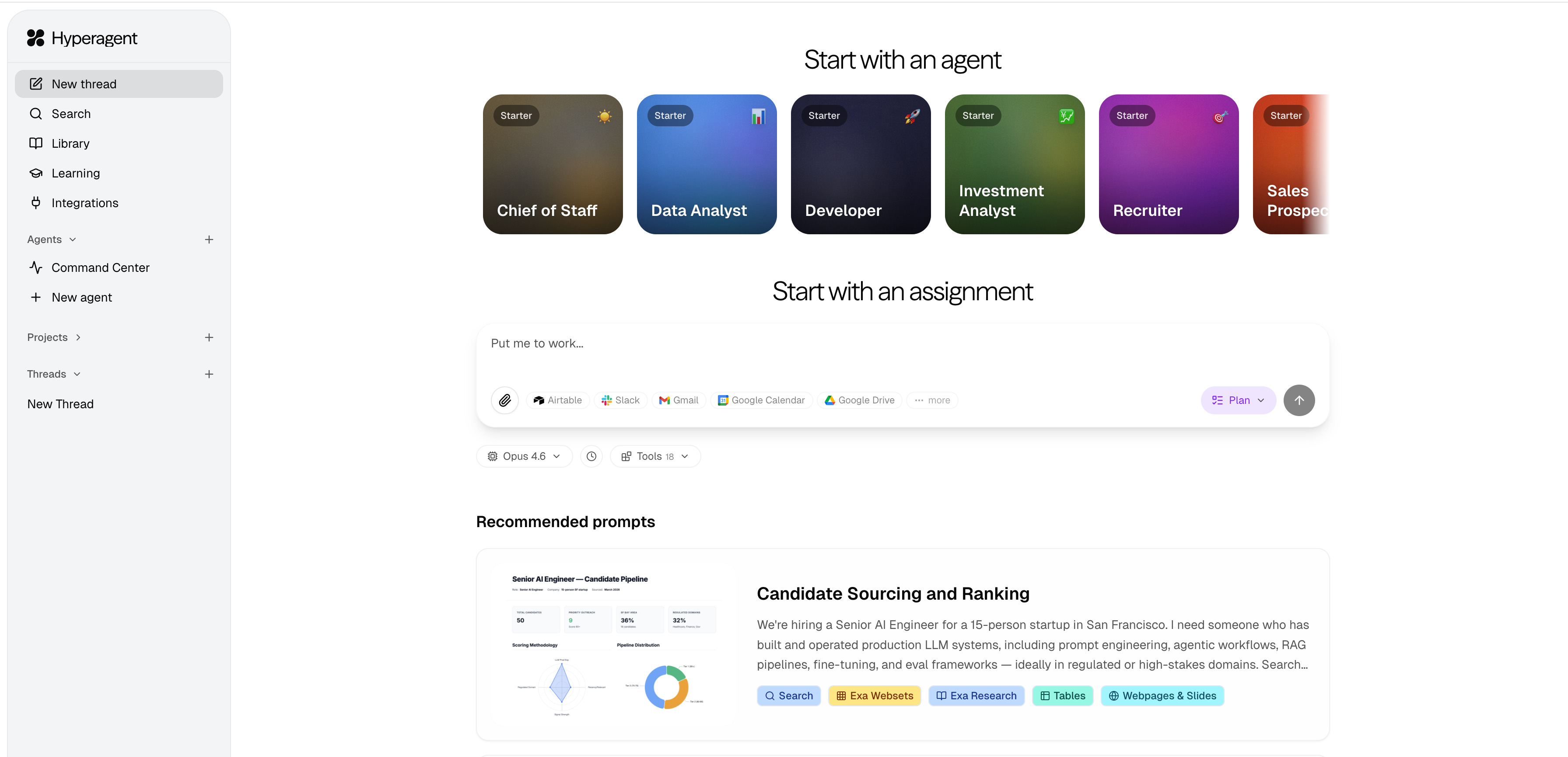 Unlike simpler agents that summarize your schedule, HyperAgents allow you to build rich outputs including podcast-style audio, webpages, and slides, including chaining together multiple tools.