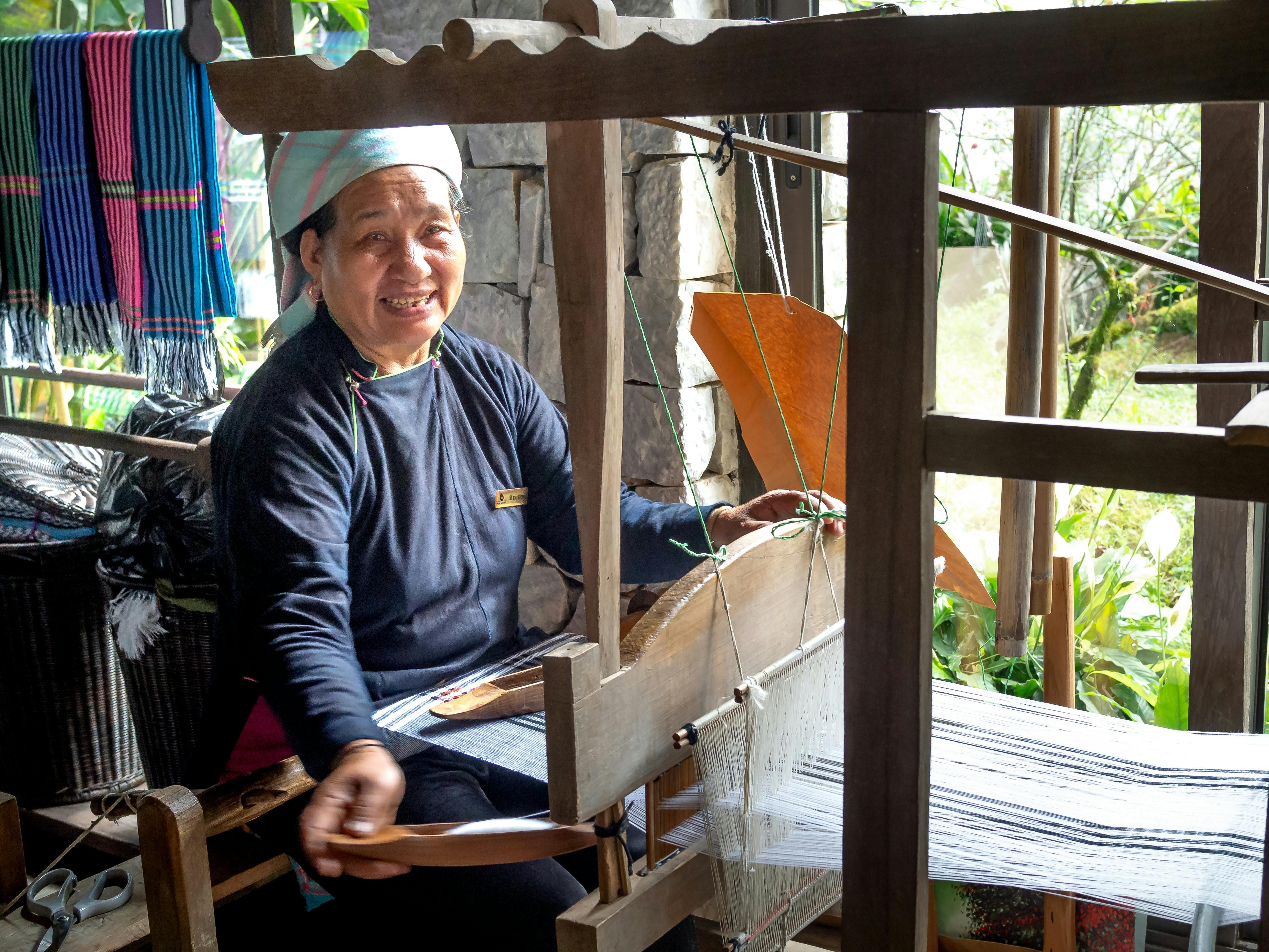 For the weaver, they simply turned on the Power Loom and watched the threads as they inspected the quality of the cloth.